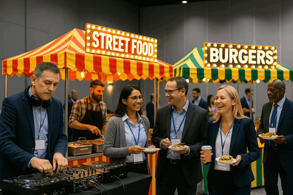 - Live entertainment & ambient music: Acoustic sets or DJ-led chill zones at break times, and during networking after the event.